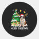 Pegatina Redonda Saint Bernard Christmas Lights Tree Santa Xmas Paj