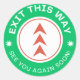 Pegatina circular clásico. Salir por aquí. Nos vemos pronto. Fondo verde.