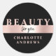 Moderno, negro y rosegold, salón de belleza pegatina redondo clásico. Perfecto para salones de belleza, diseñadores, peluquero, maquilladores, esteticista, terapeuta de belleza, estilistas y más.Edite en minutos. Puede cambiar el tamaño, el color y la posición del tipo de letra de forma individual utilizando "Personalize more".