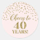 Pegatina Redonda Saludos a 40 años Confeti de oro rosado de cumplea