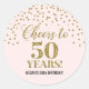 Saludos a los 50 años de la fiesta de cumpleaños favorecen a los pegatinas con confeti color rosa claro y oro.