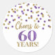 Pegatina Redonda Saludos a 60 años Confetti morado de oro de cumple