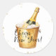 elegantes y divertidos, estos pegatinas son perfectos para su celebración de fiesta de Nochevieja. El diseño incluye confeti de oro, una botella de champán en un cubo de oro y el texto "¡Saludos al Año Nuevo!"