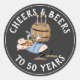 Pegatina Redonda Saludos Y Cervezas 50 Años Blanco Y Negro