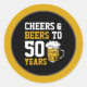 Pegatina Redonda Saludos y cervezas a 50 años 50 cumpleaños