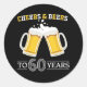 Saludos y cervezas a Pegatina redondo clásico de 60 años