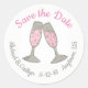 Pegatina Redonda Salva la fecha de Boda de la tostada de champán ro