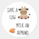 Pegatina Redonda Salva Una Vaca Leche De Almendra Vegana