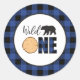 Pegatina Redonda Salvaje Un Oso Búfalo Azul Jugado Primer Cumpleaño