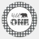 Pegatina Redonda Salvaje Un Oso Búfalo Negro Jugado Primer Cumpleañ