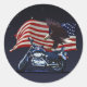 Pegatina Redonda Salvaje y libre - Águila Patriótica, Moto y Bander