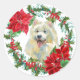 Pegatina Redonda Samoyed Poinsettia Holly Holiday Wreath