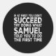 Pegatina Redonda Samuel - If At First You Don't Succeed Try Doing W
