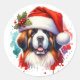 Pegatina Redonda San Bernardo en Santa Hat Navidades