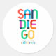 Pegatina Redonda San Diego California Mid Century, Arte Pop,