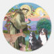 Pegatina Redonda San Francisco - Dos Perros de Montaña Berneses