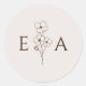 Pegatina Redonda Sand Beige Hand Drawn Floral Monogram Wedding