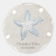Diseño inspirado en bodas de playa. Un dólar de arena y un motivo de estrella de piedra de piedra. Personaliza con nombres de pareja y fecha, este pegatina puede ser personalizado con tus propias palabras para crear un toque significativo para favores de boda en la playa, papelería o regalos.