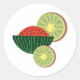 Un bonito diseño moderno con sandías ilustradas y kiwis dispersos en un fondo rosa.