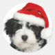 Difunde alegría navideña y celebra la temporada festiva con esta adorable pegatina redonda de mascota, que presenta un simpático perro Bichon Havanais negro y blanco con un sombrero rojo de Santa Claus sobre fondo blanco. Es una forma fácil de alegrar los sobres de tus tarjetas de Navidad, pero también un hermoso toque final para tus regalos de Navidad.