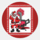 Pegatina Redonda Santa Claus antiguo y quemador de estufa de carbón