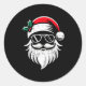Pegatina Redonda Santa Claus Face Sungles With Hat Beard Christmas