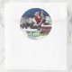 Pegatina Redonda Santa entregando carga de libros de Wyeth