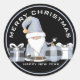 Pegatina Redonda Santa Gnome azul lindo con regalos de Navidades