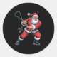 Pegatina Redonda Santa Playing Lacrosse Funny Holiday Christmas Xma