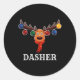 Pegatina Redonda Santa Reindeer Dasher Xmas Group Costume