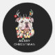 Pegatina Redonda Santa Reindeer English Bulldog Dog Christmas Light