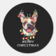 Pegatina Redonda Santa Reindeer French Bulldog Dog Christmas Lights