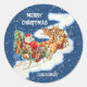 Pegatina Redonda Santa Sleigh Feliz Navidad