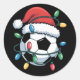 Pegatina Redonda Santa Soccer Ball Sports Christmas Soccer Player