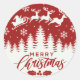 Santa y los renos Feliz Navidad | El Pegatina Sleigh Classic Round Celebra la temporada con este pegatina de la ronda "Feliz Navidad" que presenta el trineo, reno y un diseño blanco y rojo de invierno de Santa Claus. Perfecto para añadir un toque de vacaciones clásico a las cartas, regalos y decoraciones. Puede personalizarlo haciendo clic en el botón "Personalizar". Para más creaciones de Navidades alegres, visita nuestra tienda.