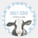 ¡Santo Vaca! Pegatinas de fiesta de cumpleaños de vacas y mantas azules.
