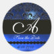 PEGATINA REDONDA SAPPHIRE NEGRO Y AZUL DAMASK MONOGRAM,