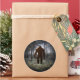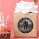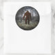 PEGATINA REDONDA SASQUATCH EN MADERA