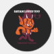 Diseño gracioso con demonio retro personalizado agudo y la leyenda "Satanás te ama por lo que eres". Un regalo para el Día de San Valentín.