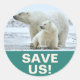 Pegatina Redonda "Save Us!" Global Warming Slogan with Polar Bears