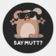 Pegatina Redonda Say Mutt Funny Guay Dog Pun Dark BG