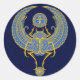 Pegatina Redonda Scarab alado egipcio, azul