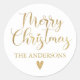 Pegatina Redonda Script de caligrafía navideña simple Gold Merry
