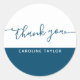 Pegatina Redonda Script Moderno Azul Oscuro Blanco Gracias