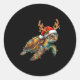 Pegatina Redonda Sea Turtle Christmas Lights Santa Hat Merry Christ