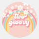 Pegatina Redonda Segundo cumpleaños del arco iris retro dos Groovy