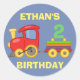 Pegatina Redonda Segundo cumpleaños del tren amarillo rojo