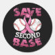 Pegatina Redonda Segundo goce básico de diversión: Béisbol, cáncer