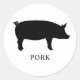 Personalizar los colores blanco y negro de este diseño para que coincidan con la paleta boda. Puede cambiar el color del icono de estilo de silueta animal de cerdo. Personalizar el tipo de letra, el tamaño y el color que se necesiten para que encajen en el nombre del seguro de cerdo que está sirviendo en su evento especial. boda de personalizable o pegatinas de comidas de servicio de restauración.