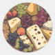 Clásico Pegatina Redondo con una imagen retro gráfica de un plato de queso con nueces y uvas. Excelente para cualquier persona o negocio relacionado con la comida gourmet, la restauración o la fruta. Generación de contenido impulsada por Canva AI y Alma Wad.